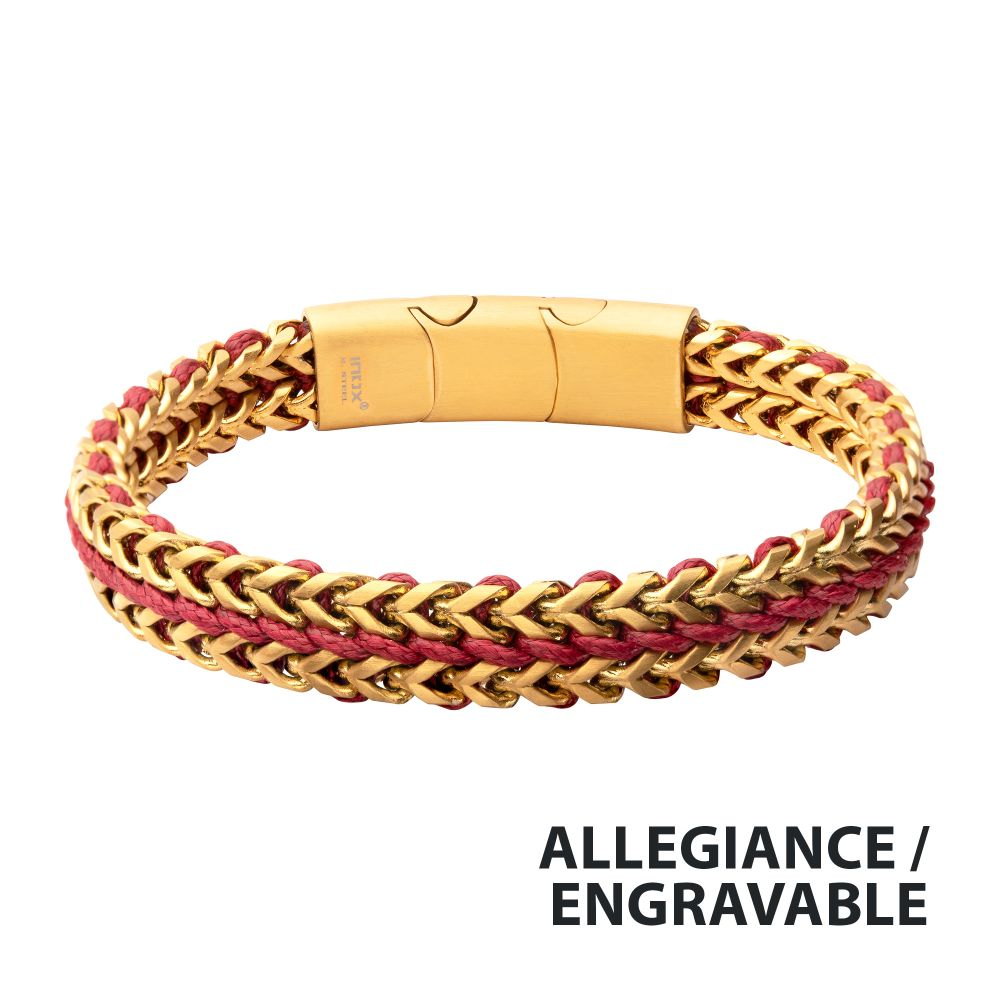 (623) 374-7706Matte Finish Gold IP Stainless Steel Foxtail Chain with Red Wax Cord Bracelet
